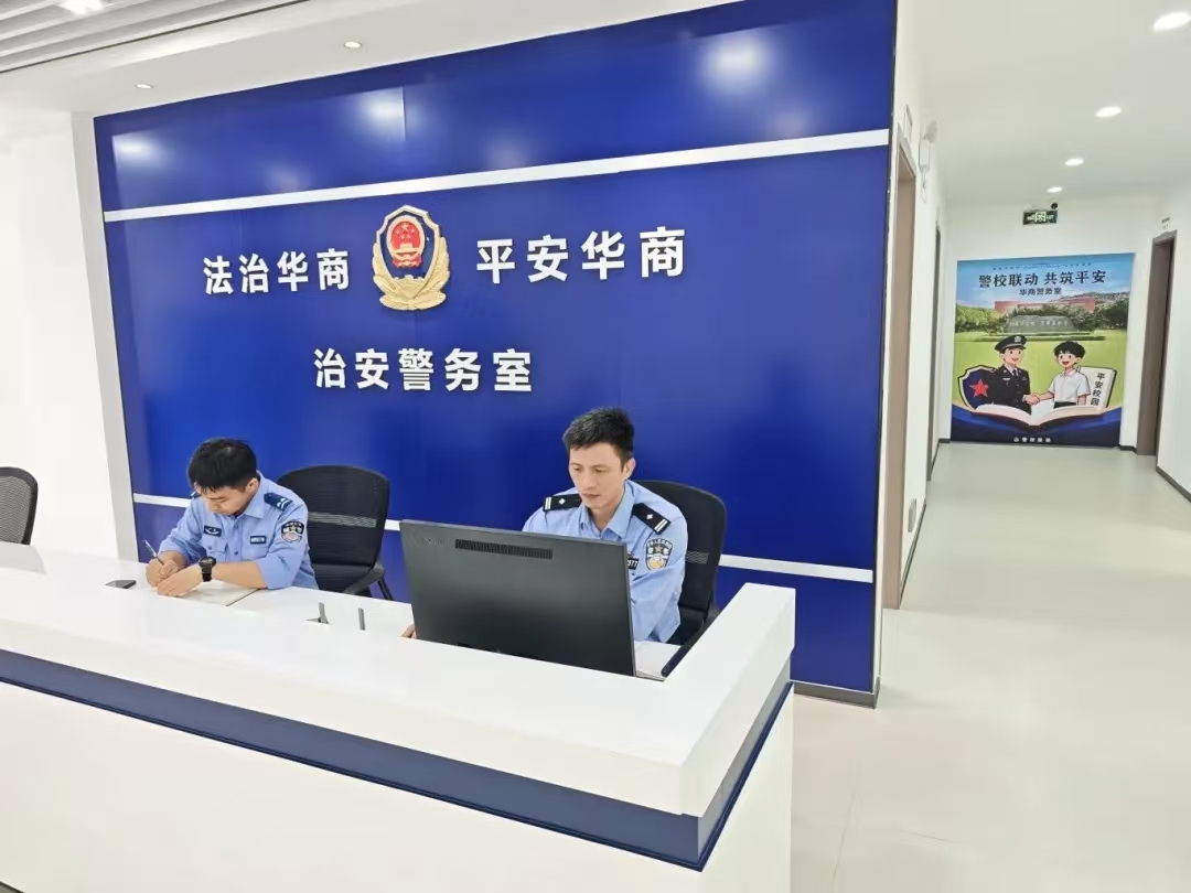 警务室配备驻点民警和安保团队,实行24小时值守制度,可快速响应校园内外治安事件,处理突发事件,定期开展巡逻防控,全力清除安全隐患。学校积极借助警务室平台的资源优势、组织优势、技术优势,充分利用警校联动机制,不断优化解决我校在治安、消防、交通等安全方面的管理难题。